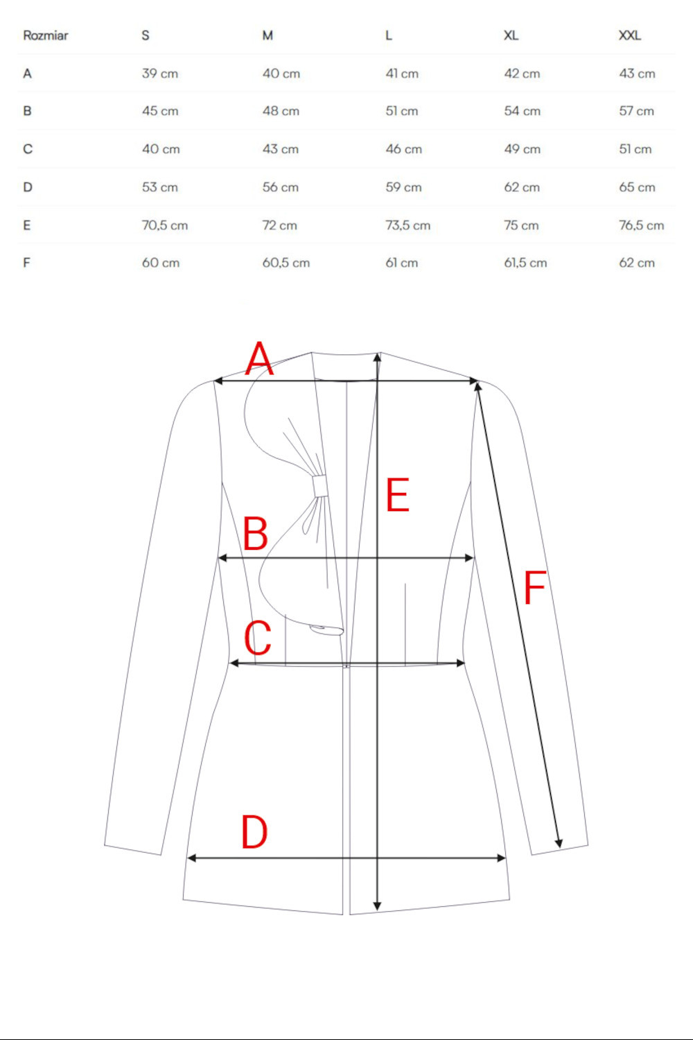 Stylowa marynarka, która świetnie sprawdzi się jako element eleganckiego garnituru lub samodzielnie – np. do spodni w kant, spódnicy czy sukienki. Ozdobne wykończenie w postaci pionowej kokardy przy dekolcie nadaje jej wyjątkowego charakteru i sprawia, że wygląda bardzo szykownie. Idealna na uroczystości rodzinne, przyjęcia, spotkania biznesowe, pracę i eleganckie wyjścia.