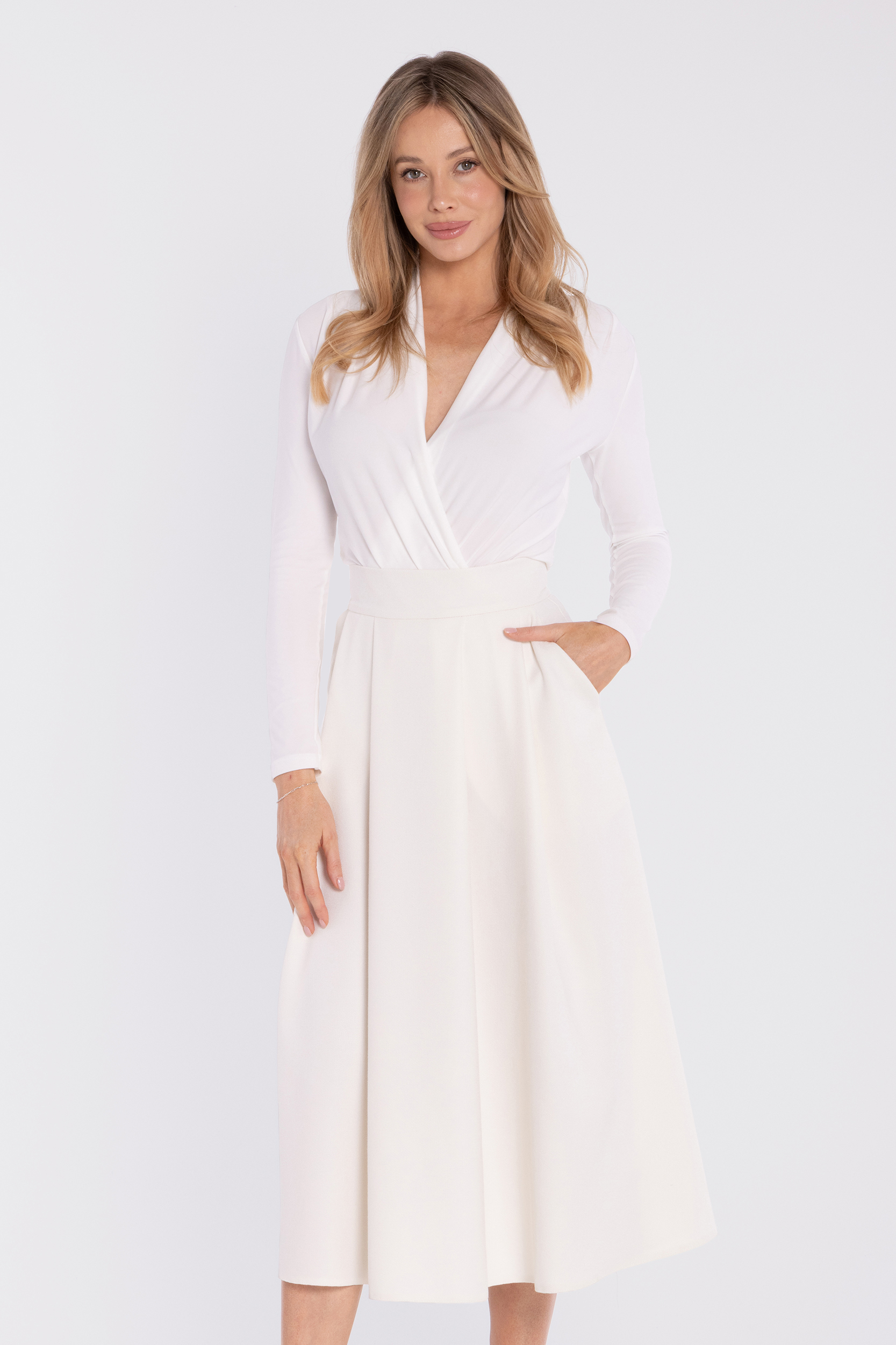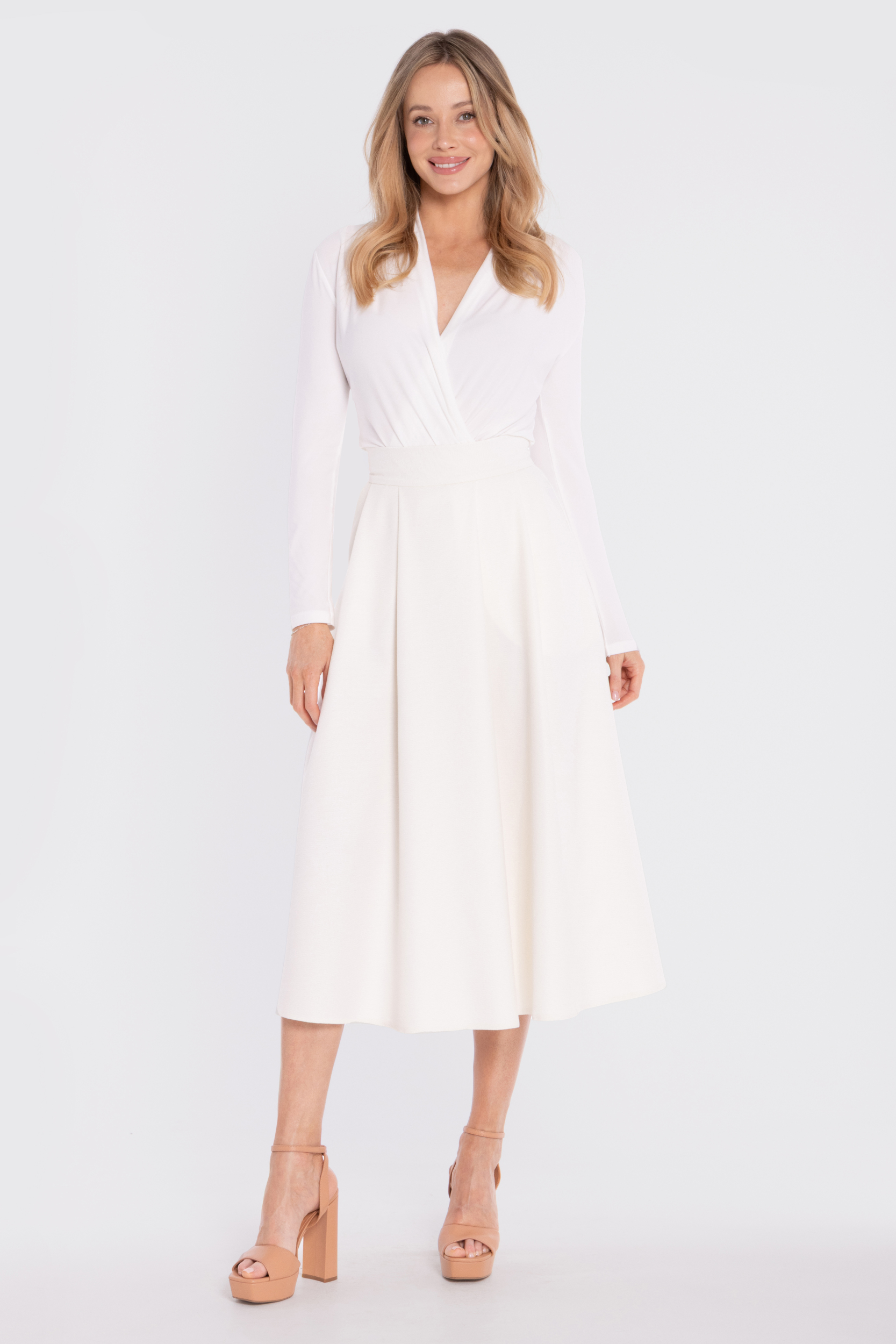 Spódnica midi COLETTE z wysokim stanem – śmietankowa