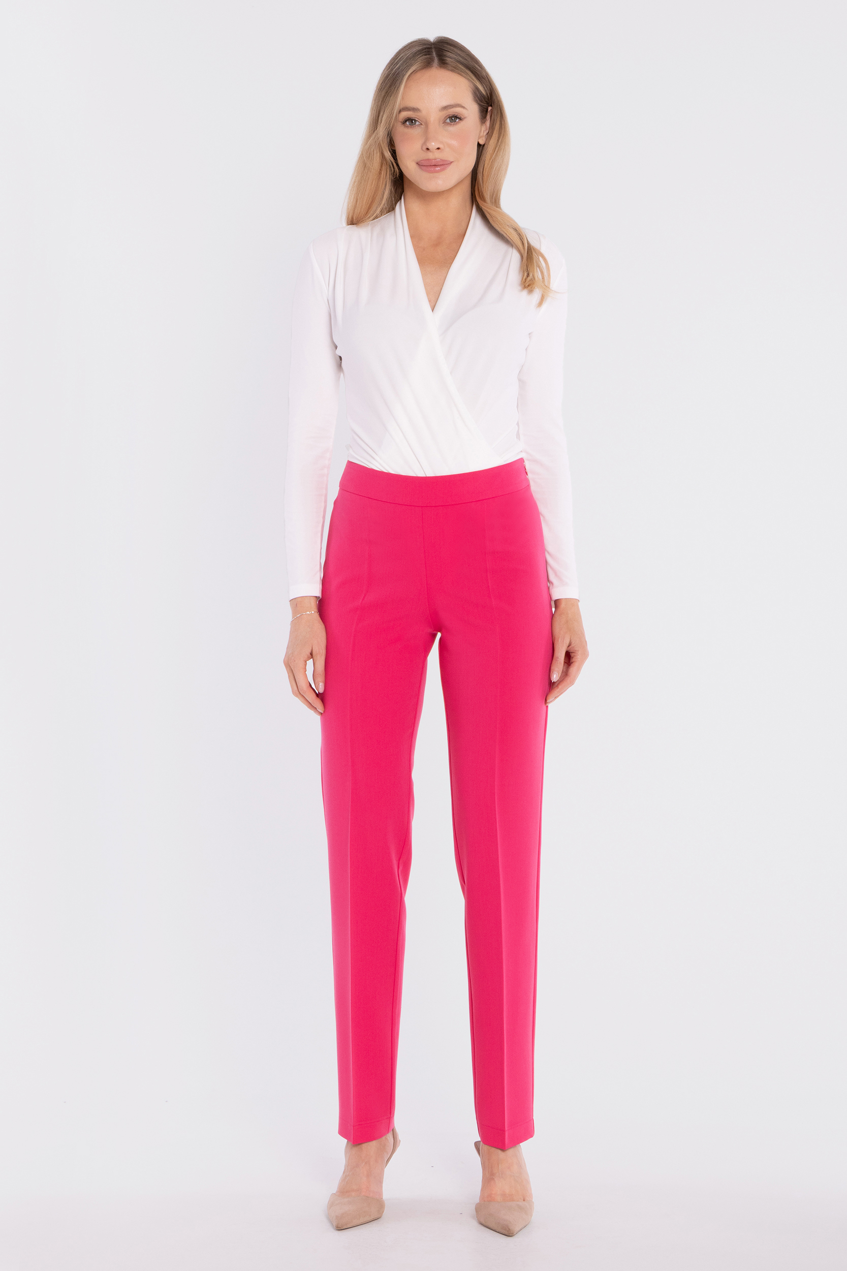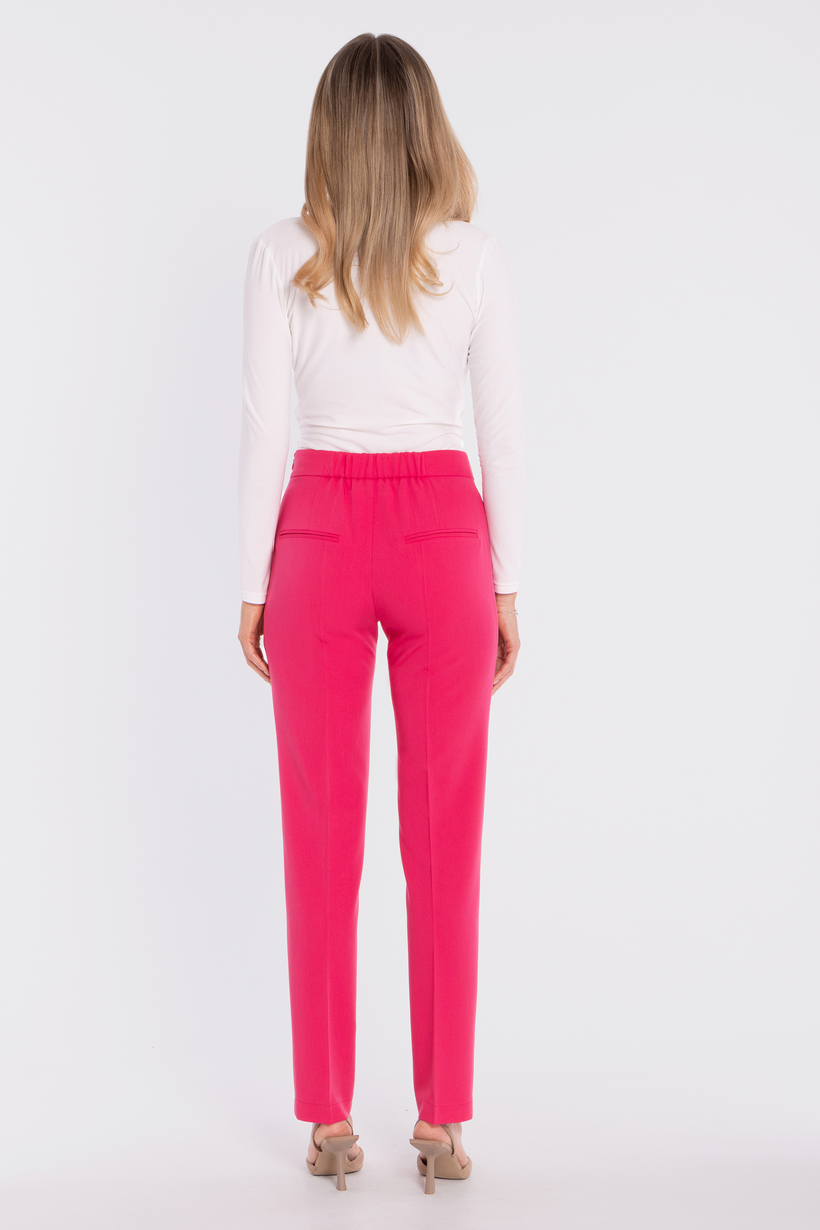 Klasyczny model, który świetnie sprawdzi się zarówno w stylizacjach biznesowych, jak i bardziej modowych zestawach. Dzięki gumie z tyłu w pasie spodnie są wygodne i dobrze dopasowują się do sylwetki. Idealne do marynarki, koszuli, topu czy eleganckiego body – na spotkania, do pracy, rodzinne uroczystości i wyjścia “na elegancko”.