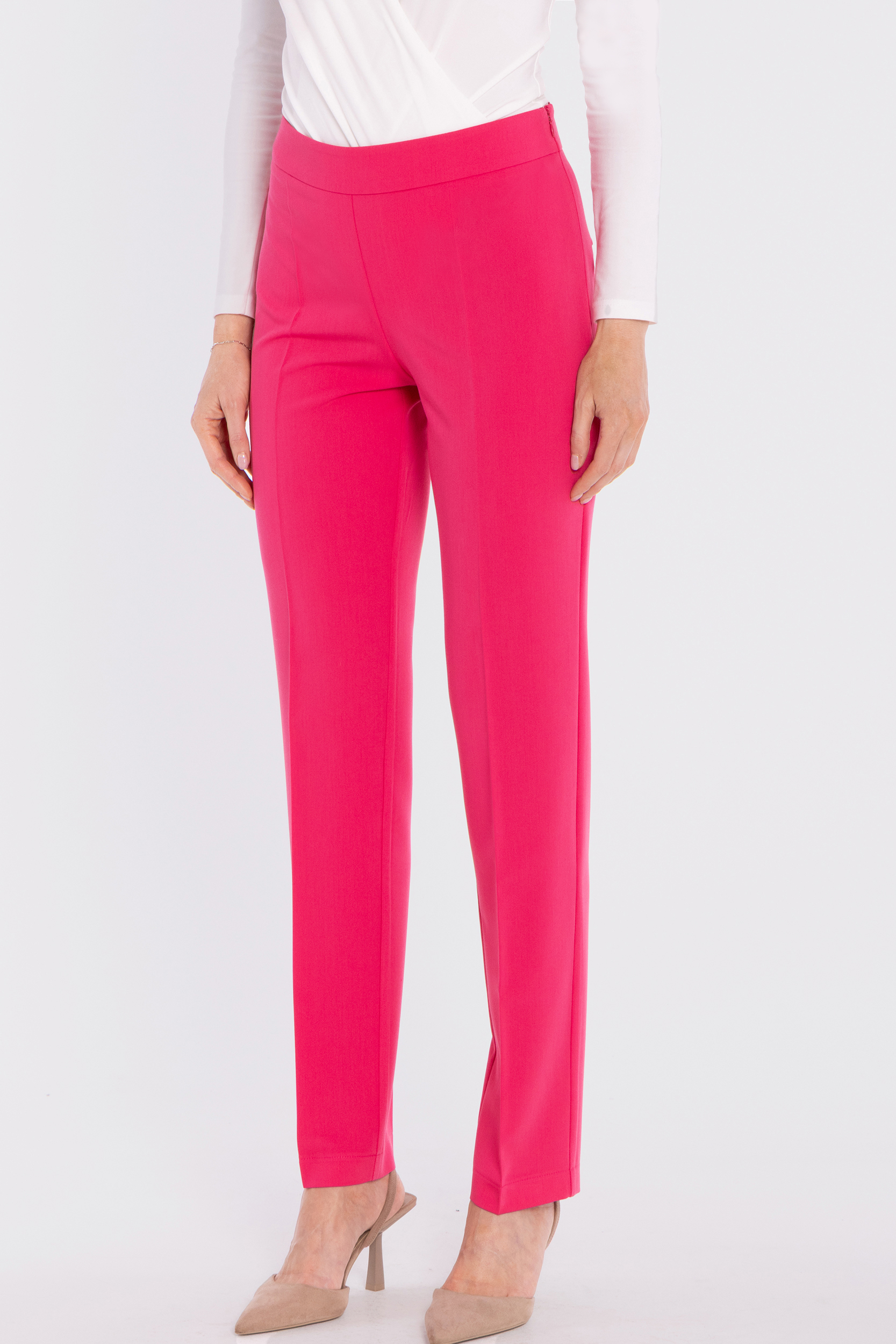 Kształt: dopasowane w pasie i biodrach, z prostą, lekko zwężaną nogawką, która wysmukla sylwetkę.