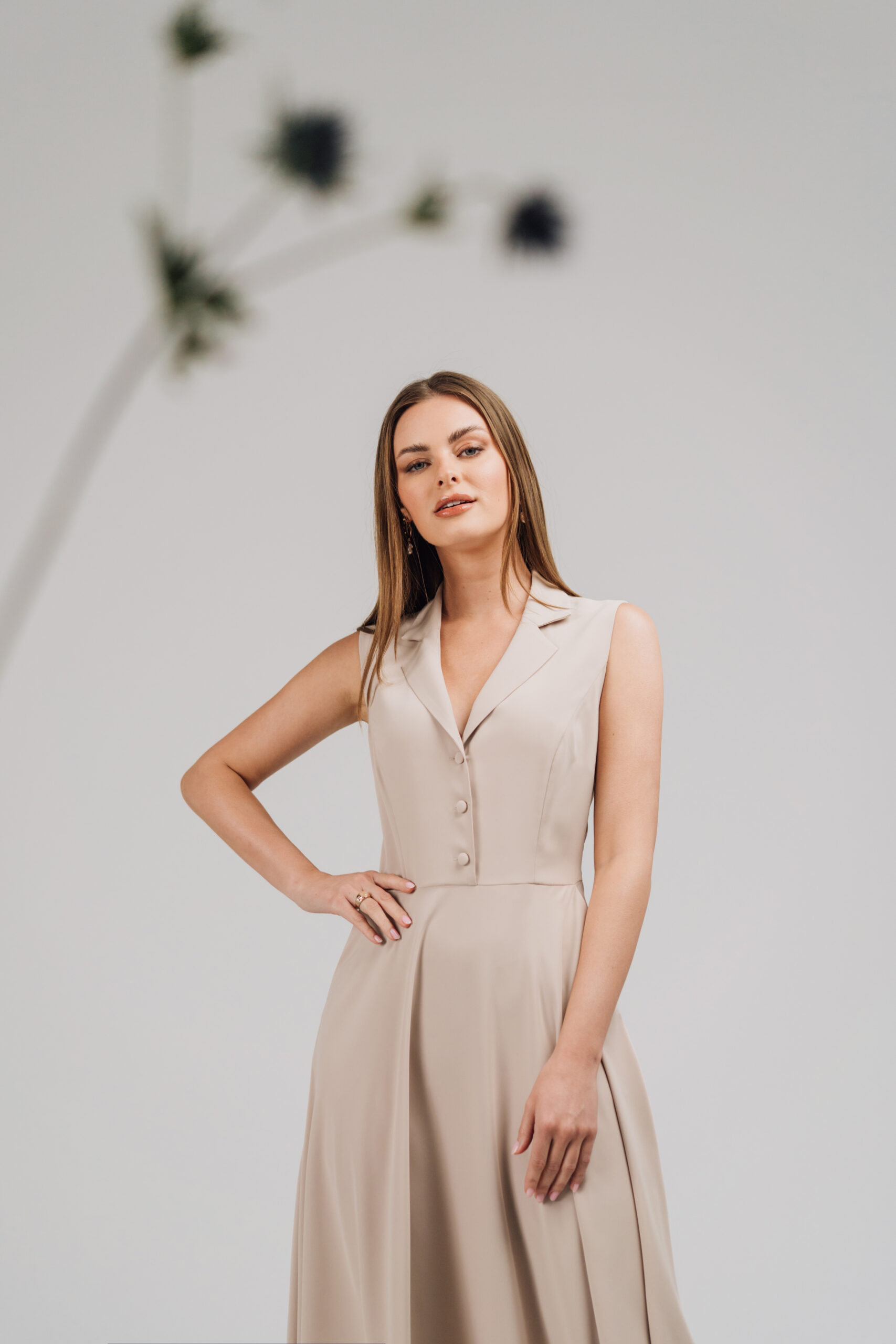 Sukienka AGNES z rozpinanym dekoltem – beżowa