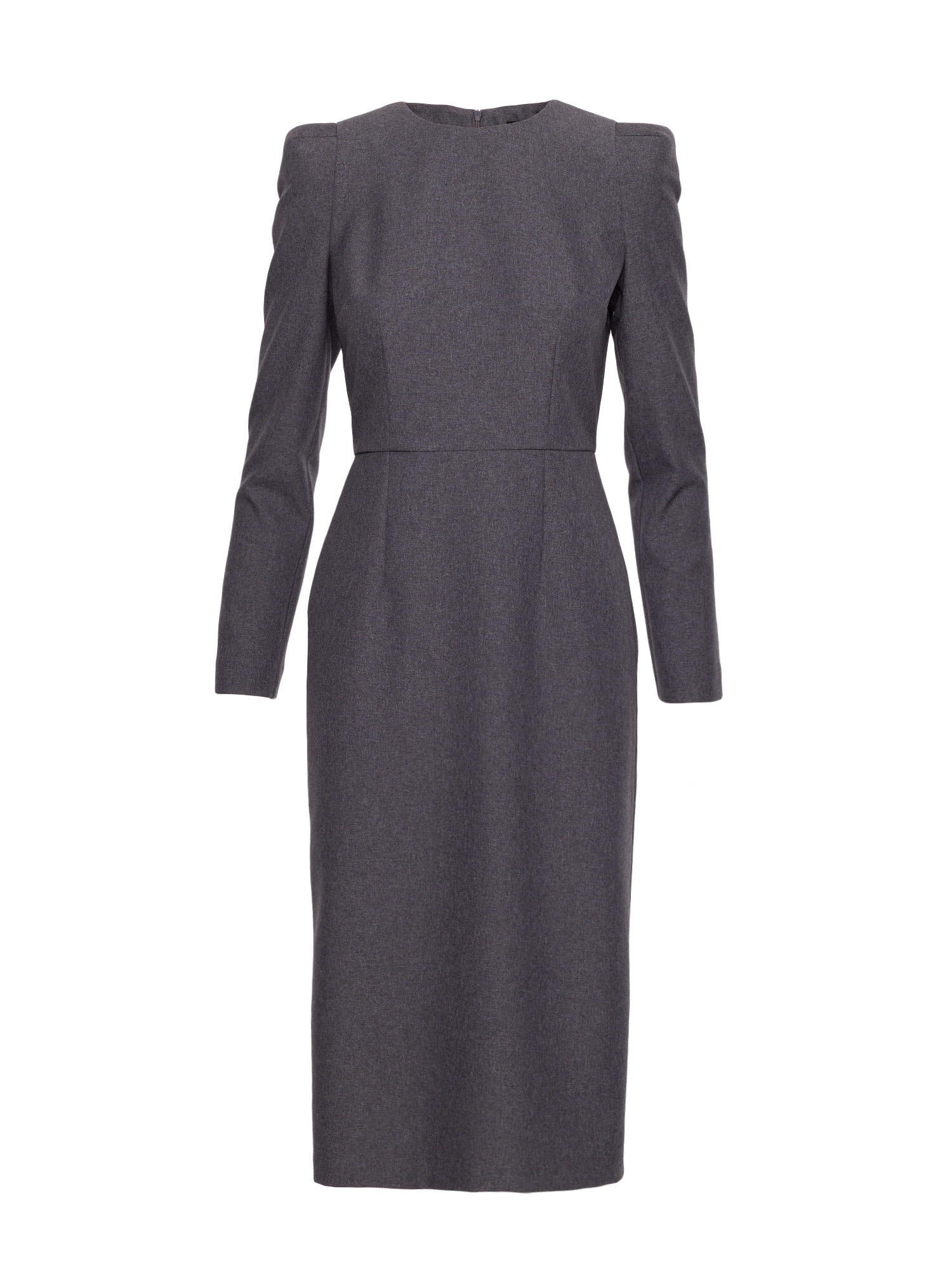 Sukienka ołówkowa SELENA z ozdobnymi ramionami – szara